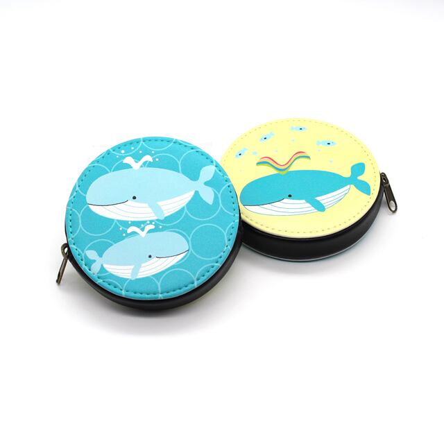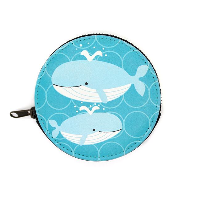 2匹のくじらが仲良く泳いでいるイラストのかわいいコインケースです。
