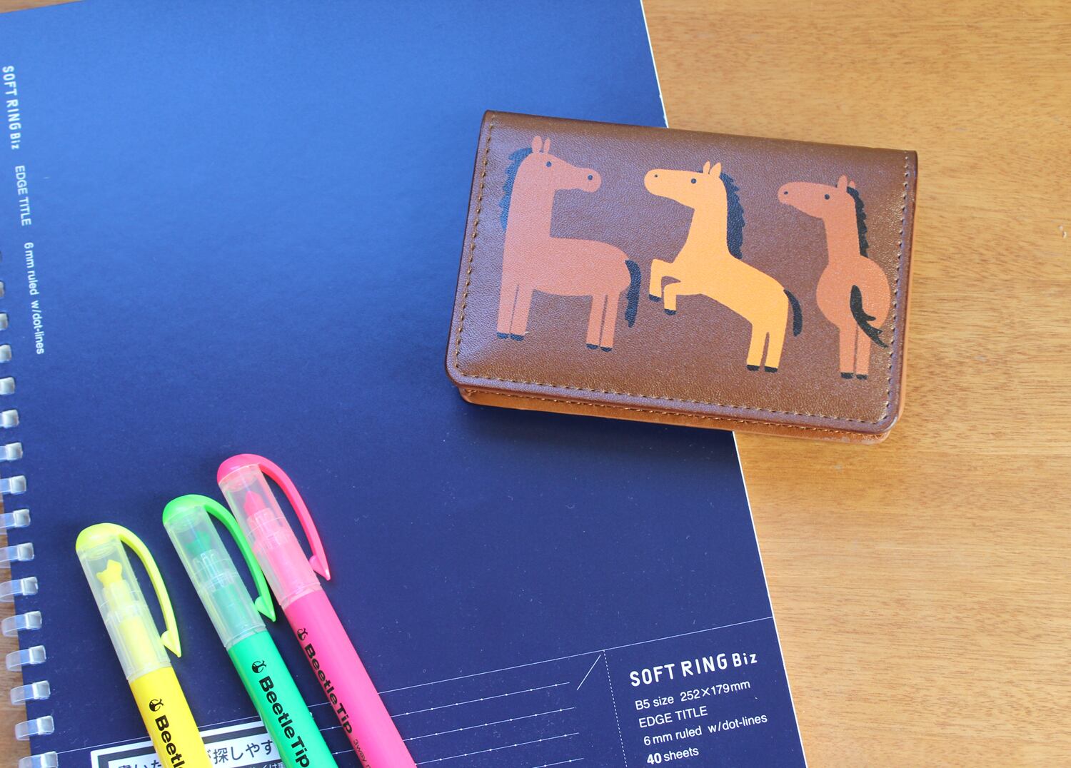 馬の日常のかわいいしぐさを描いた名刺・カードケースです。
